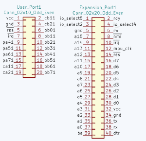 The first version of the computer was build on a breadboard. Once the breadboard design was functionally complete and stable at 4 Mhz, the design was fixed on a PCB in through-hole technology. In order to allow connection of additional peripheral devices and extensions, two interfaces were added: A user port to provide access to the free I/O ports, and an expansion port exposing the buses and other internal lines. The KiCad design files of the PCB are included in the repository.